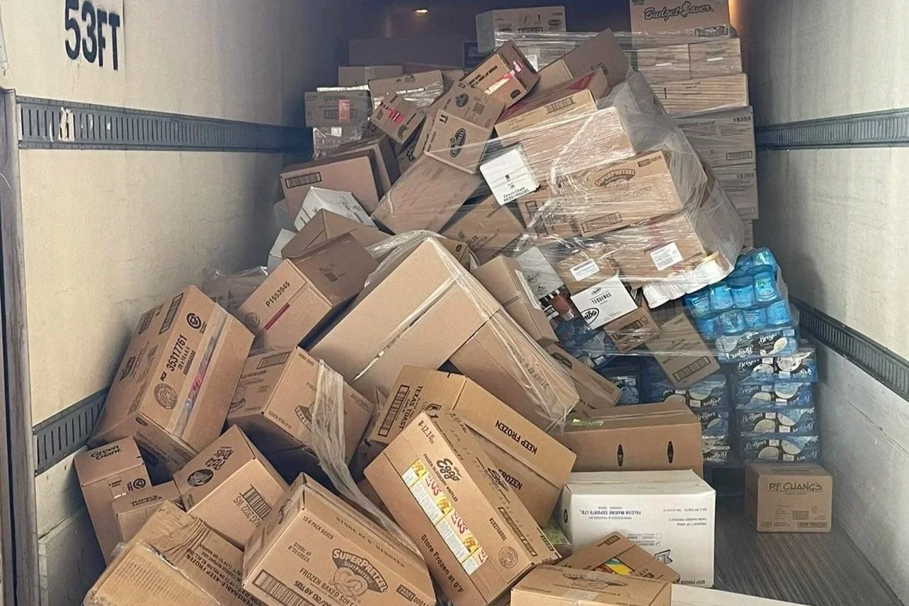 Pallet load fallen over in transport